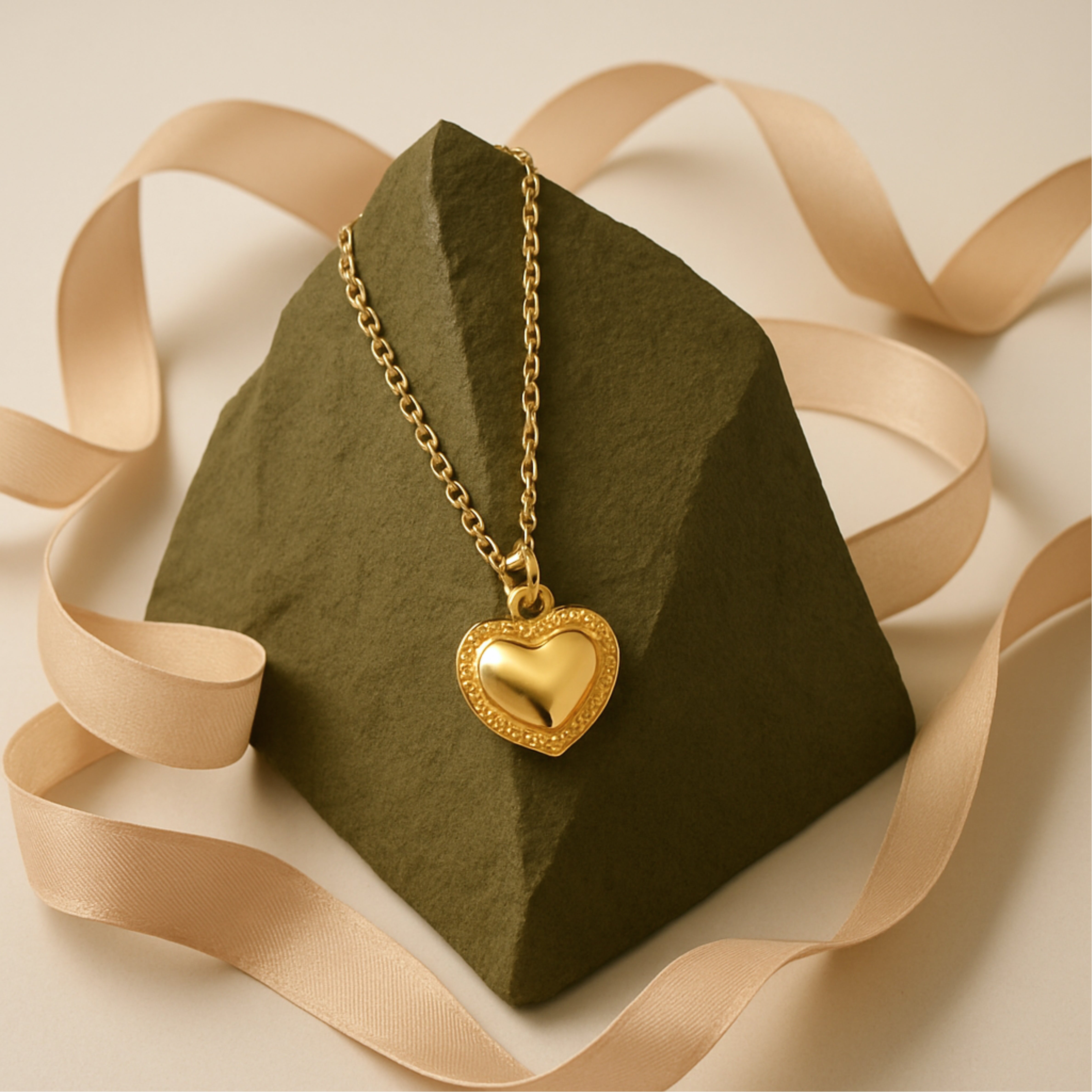 A modern to ‘90s romance: this puff-heart necklace pairs a softly domed heart charm with a beaded vintage-style border. Finished in rich 18 K gold over solid 925 sterling-silver, it’s light enough for everyday yet eye-catching in a layered stack. Wear it solo for instant elevation or mix it with chains, pearls, and initials to tell your own love story.
