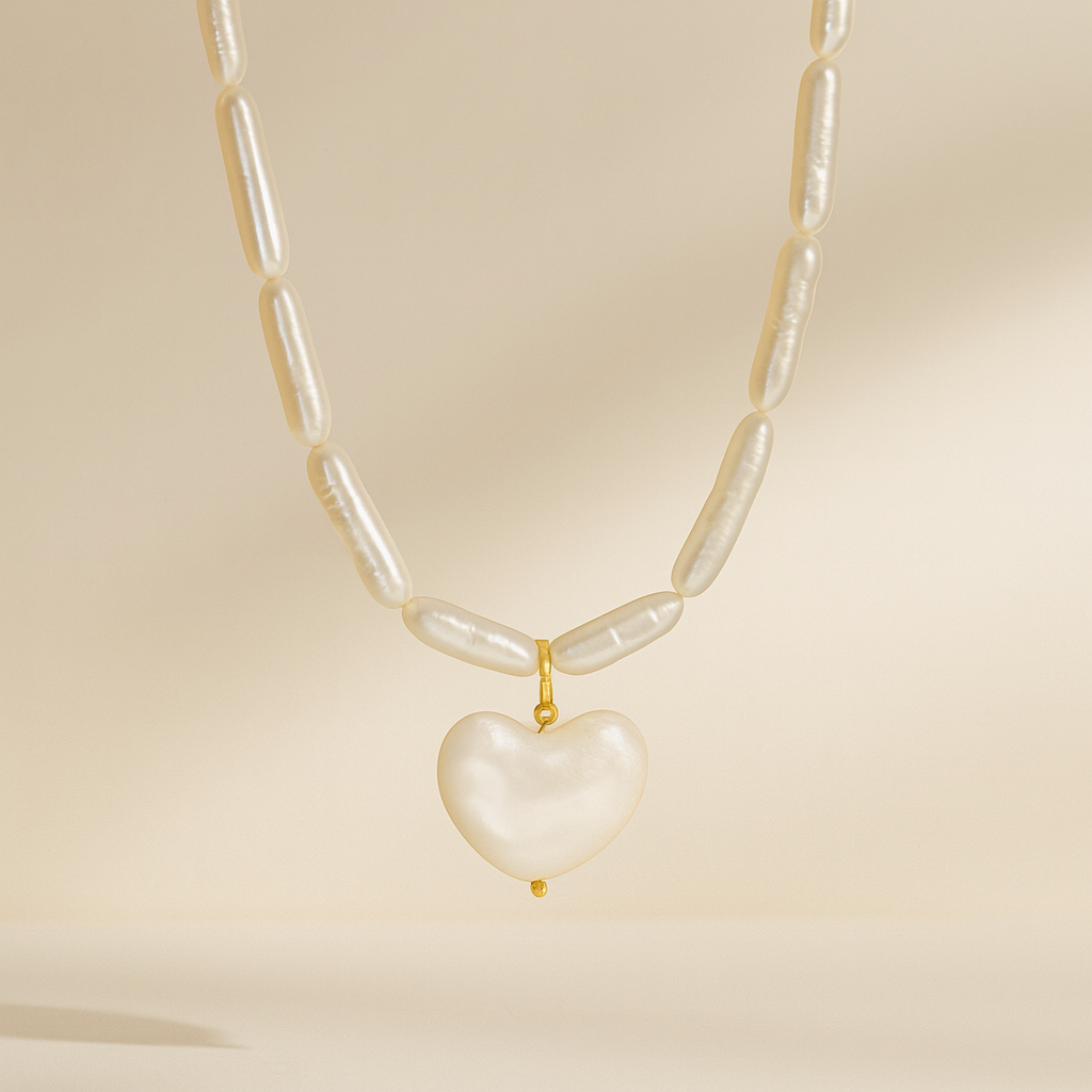 A charm that speaks from the heart. The Heart-Shaped Pearl Charm features a luminous freshwater pearl in a delicate heart silhouette, paired with a gold-plated 925 silver clasp. Romantic and refined, it adds meaningful charm to your hoop earrings, bracelets, or necklace chains. Whether a symbol of self-love, a gift for someone special, or a statement of timeless romance, this piece is made to be cherished.