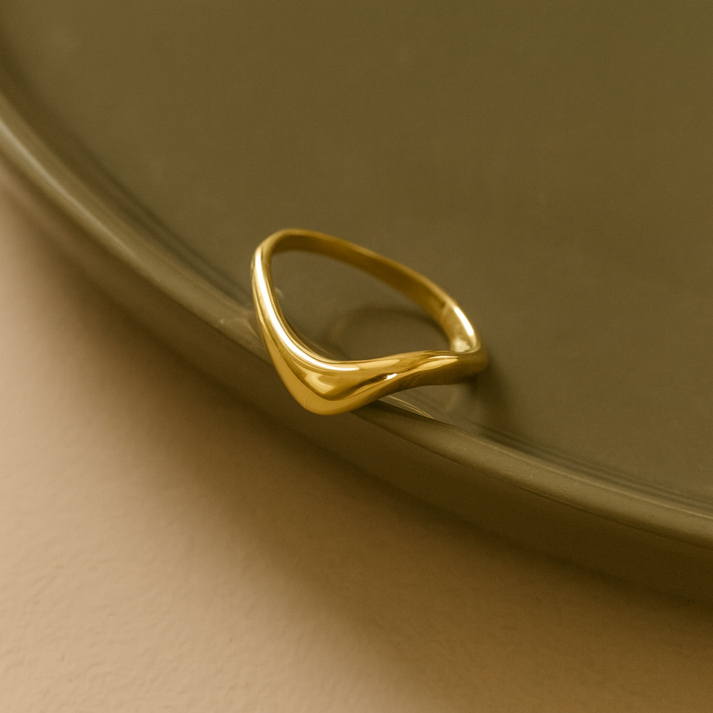 A refined expression of movement and form, the Waveform Minimal Ring brings sculptural elegance to your everyday. Crafted from 925 sterling silver with 18k gold plating, its flowing, asymmetrical shape feels both organic and architectural. Wear it solo or stack it for a modern silhouette.