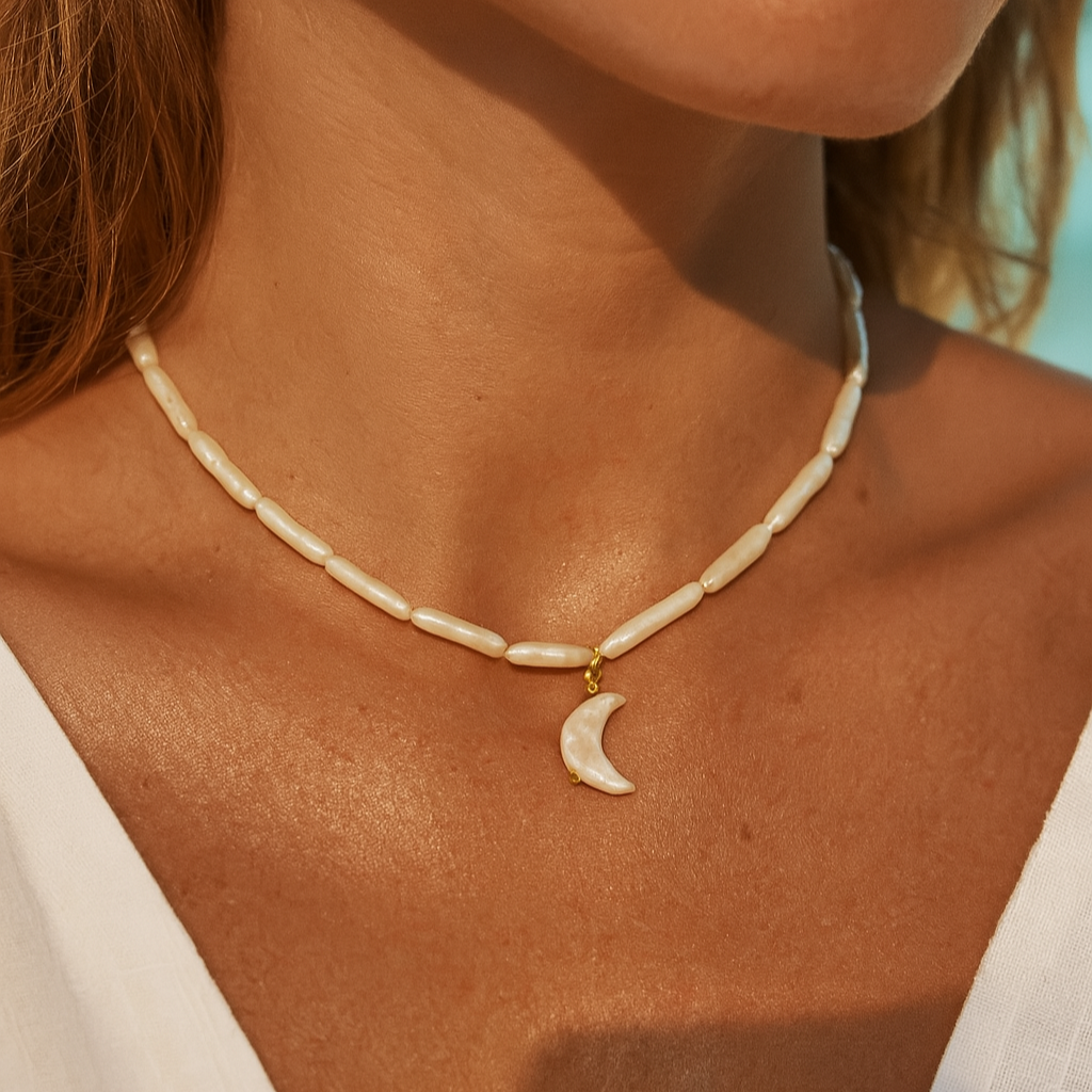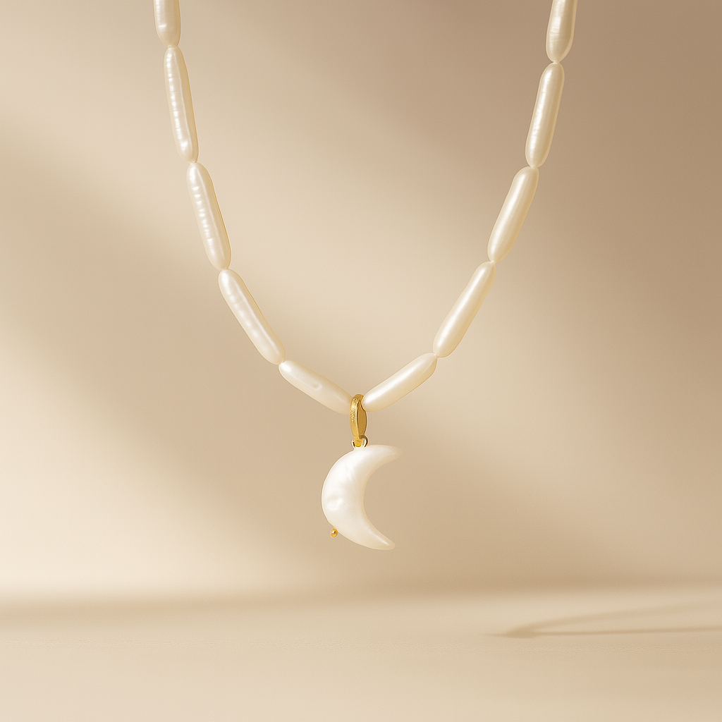 A delicate symbol of elegance and mystery, our Crescent Moon Pearl Charm is crafted from natural freshwater pearl and finished with a luxurious 18k gold-plated clasp. Each charm is unique in shape and luster, celebrating the organic beauty of the moonlit sea.