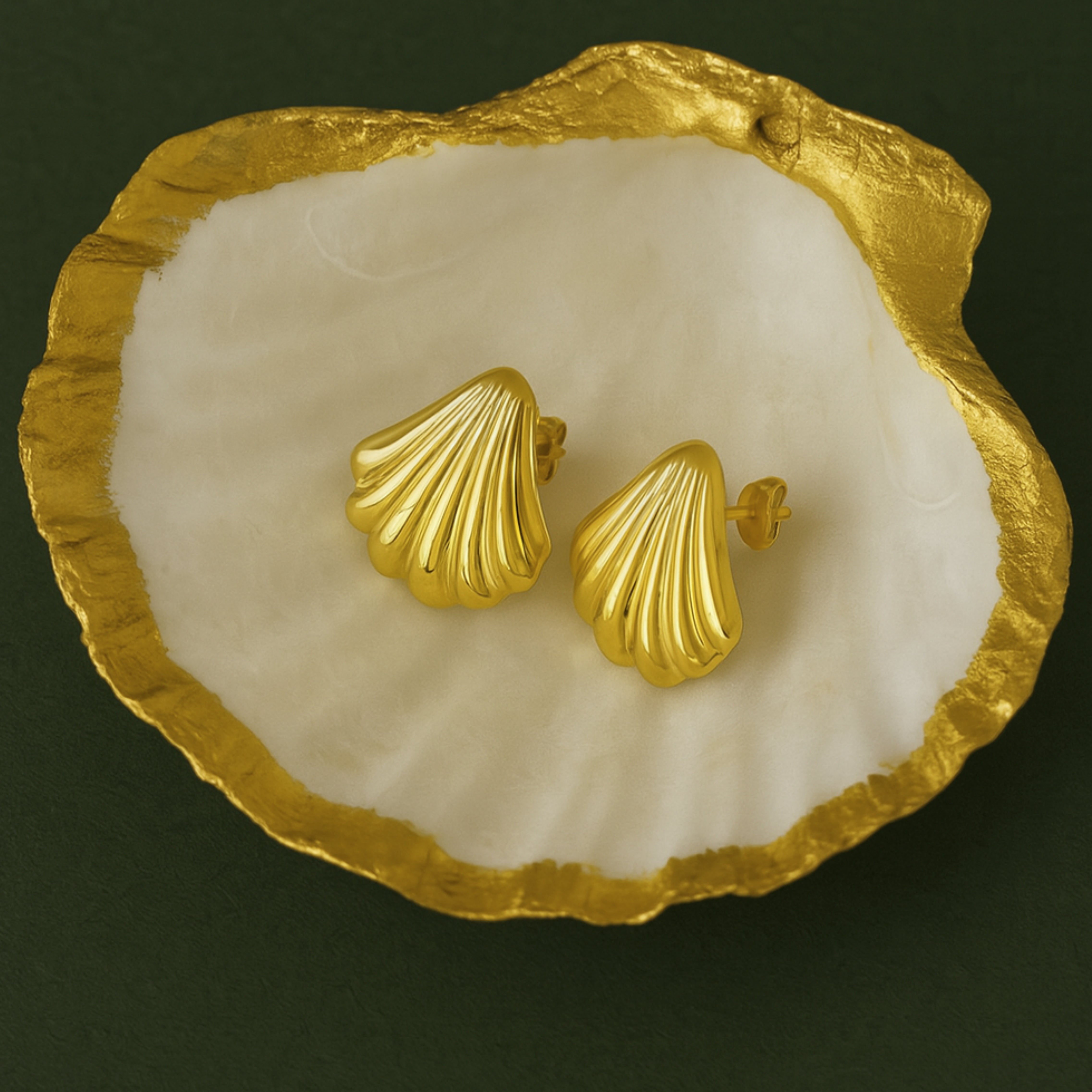 Channel sun-washed shorelines with our Seashell Stud Earrings. Each scalloped shell is cast in solid 925 sterling silver and dipped in a thick layer of 18K gold, capturing every ripple and ridge of a real beach find. Feather-light yet eye-catching, they’re an effortless way to bring seaside glow to office outfits, weekend linen, or sunset-hour cocktails. Hypoallergenic, and ready to travel wherever the tide takes you.