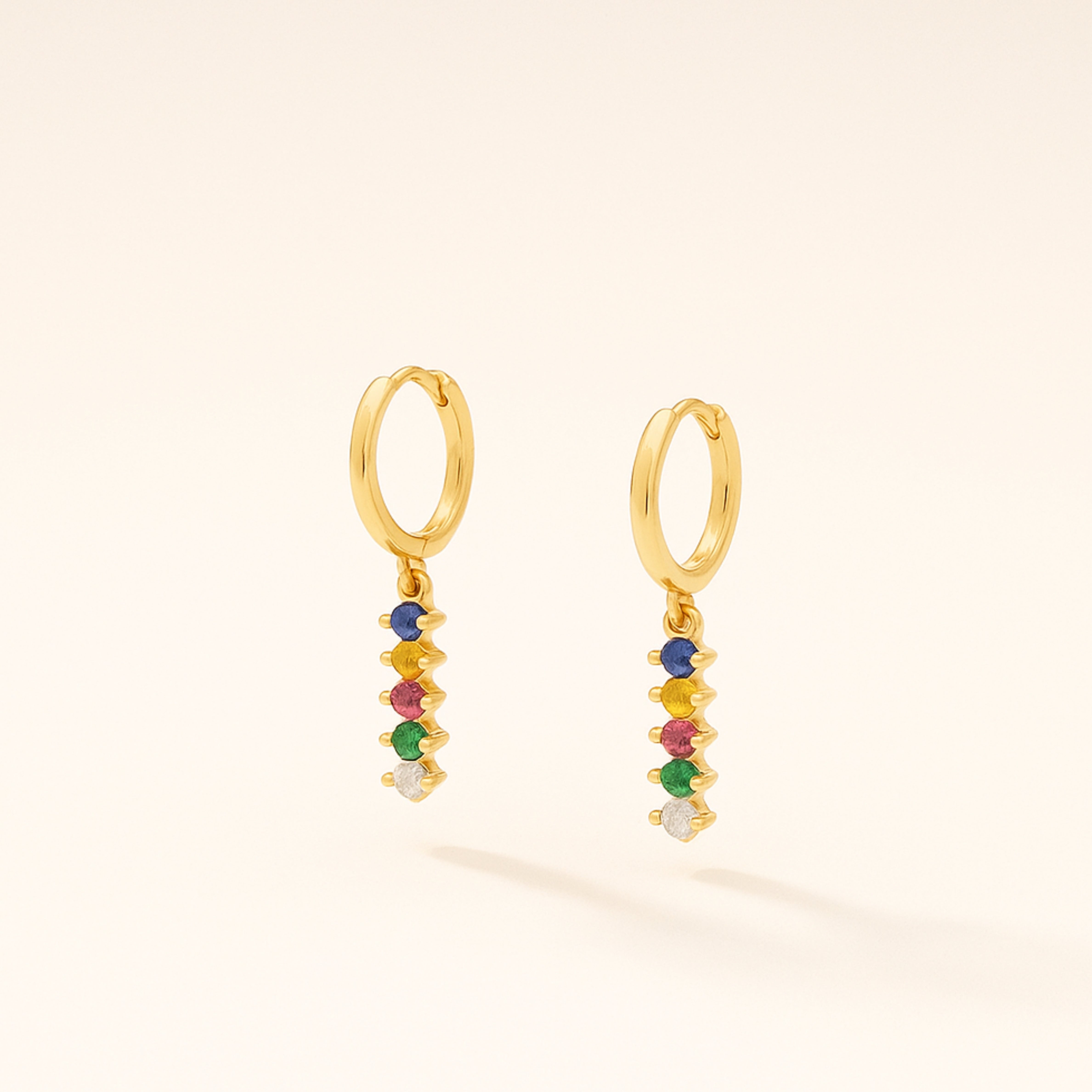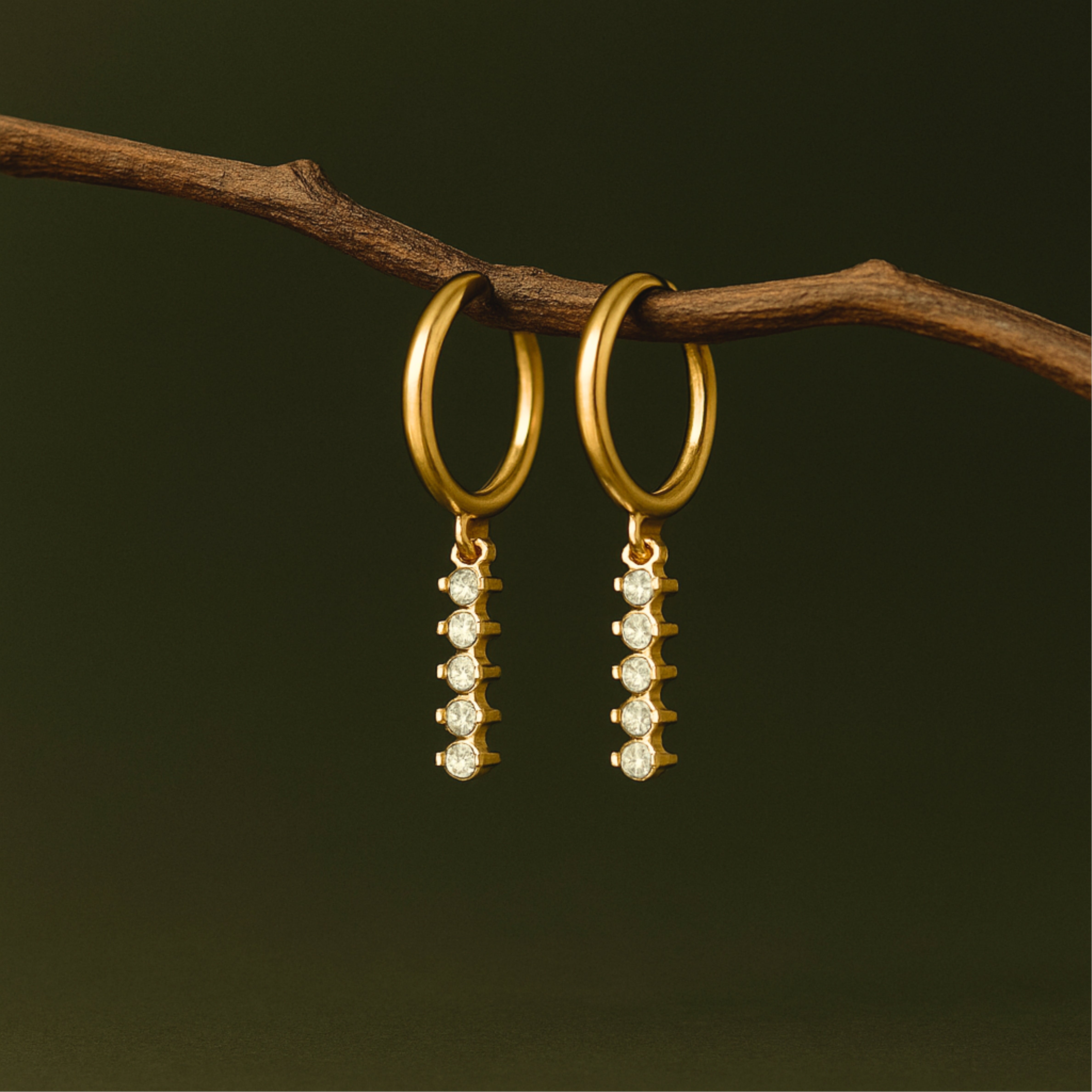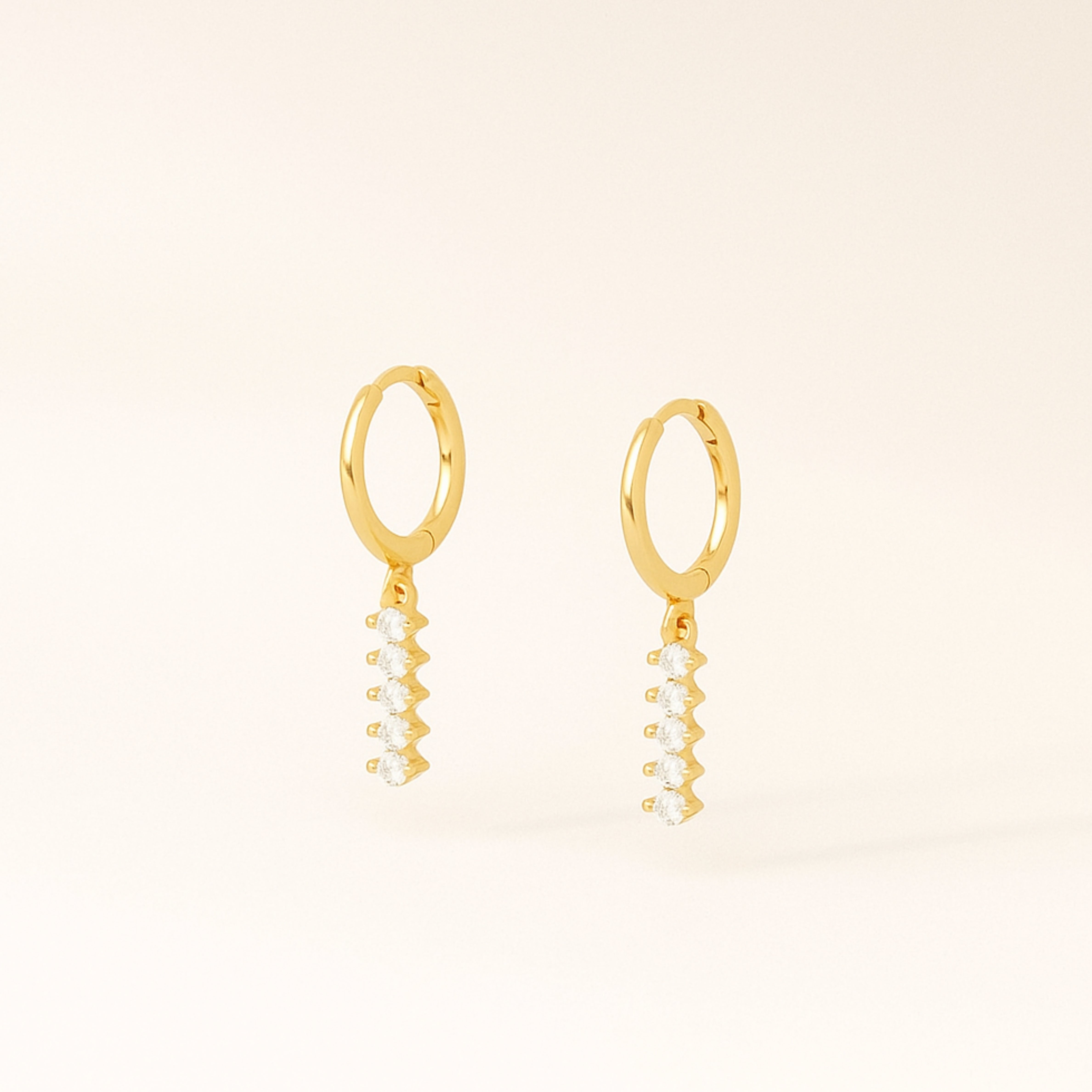 These Dainty Dangle Hoops bring a subtle sparkle to your everyday look. With a row of glistening zirconia stones delicately suspended from a smooth gold hoop, this pair is both minimal and eye-catching. Lightweight and versatile—perfect for layering or wearing solo.