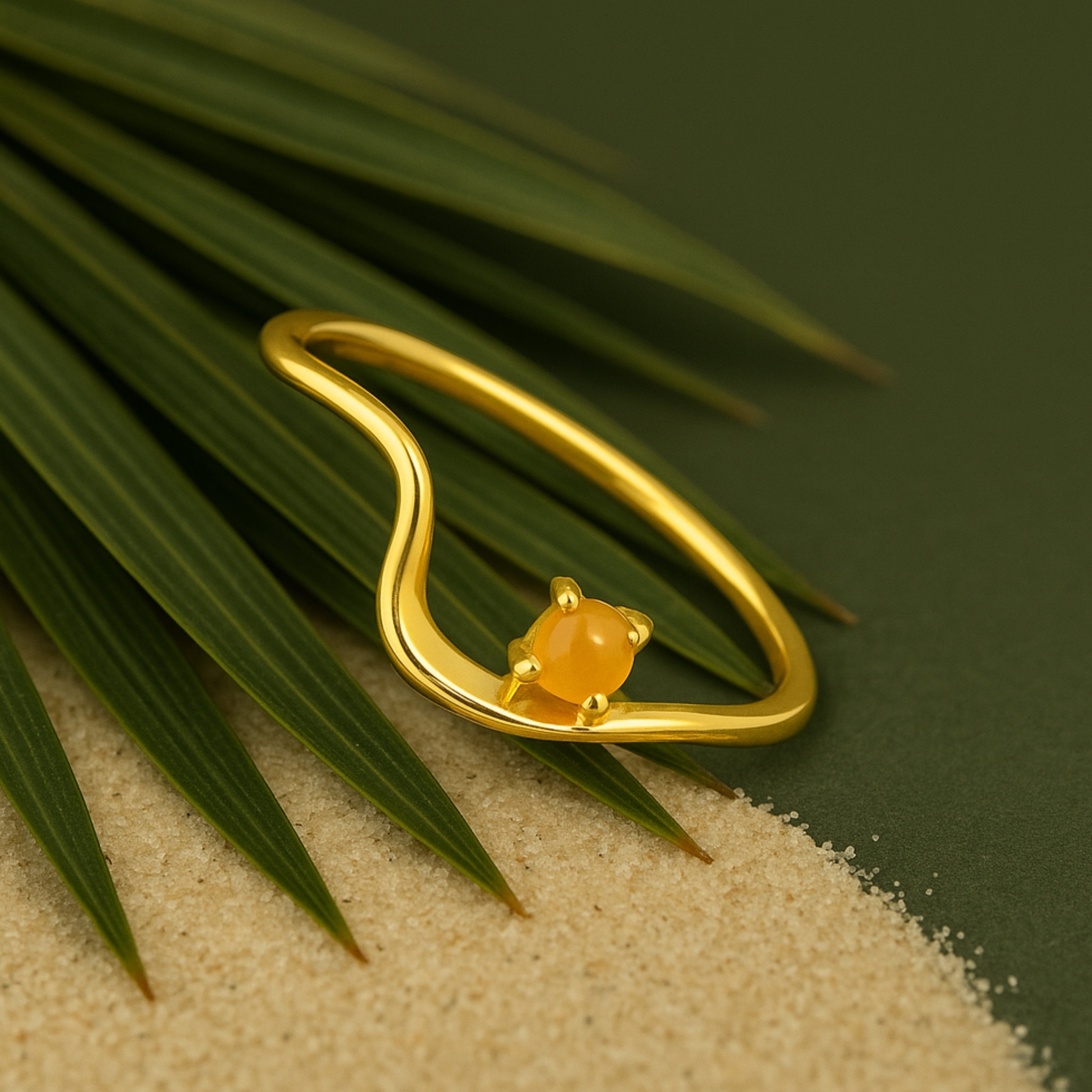 Slip on a little coastal magic. These Green and Orange Opal Rings swirls a slim 18 K gold–plated band into a gentle wave, then tucks a glowing opal stone right in the curl. It pairs beautifully with your everyday gold stack (or that random pearl ring you love). It’s cast on comfy, nickel-free sterling silver, super lightweight, and won’t mind a bit of beach breeze or a rooftop cocktail at golden hour.