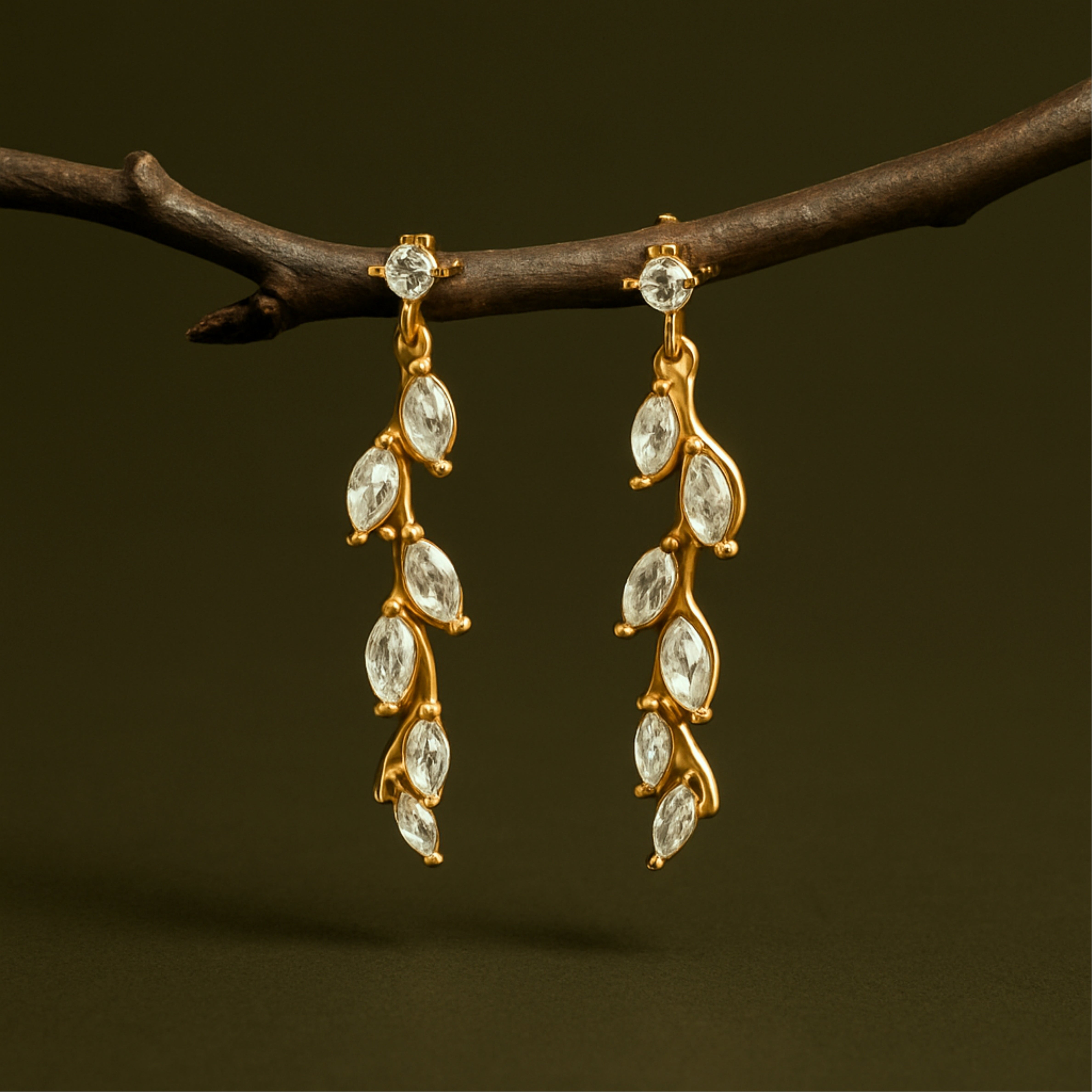 Let your style flow effortlessly with our Leaflet Drop Earrings. Light, graceful, and full of quiet sparkle, these earrings sway gently as you move—catching the light and drawing just the right amount of attention. Perfect for everyday elegance or an elevated evening look.