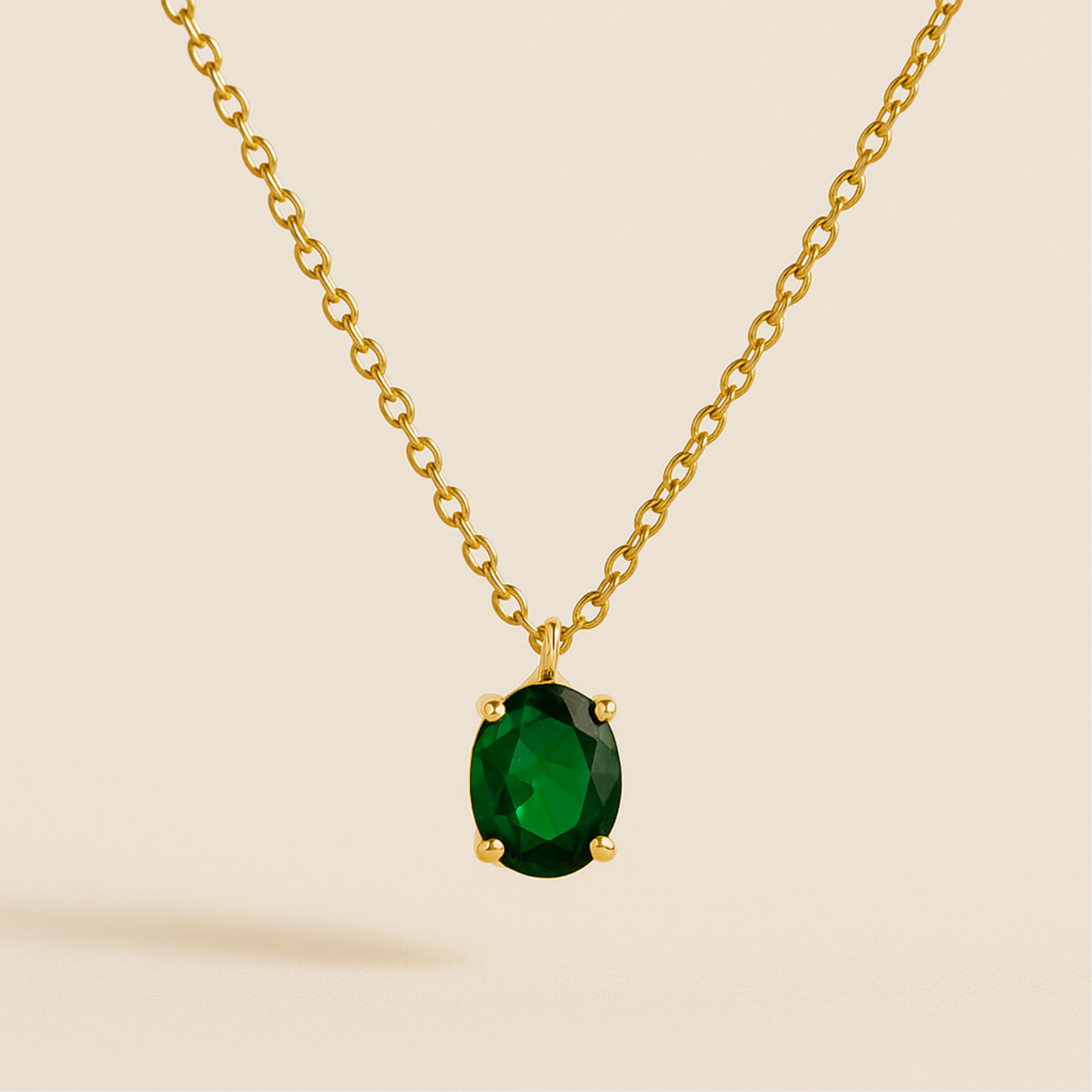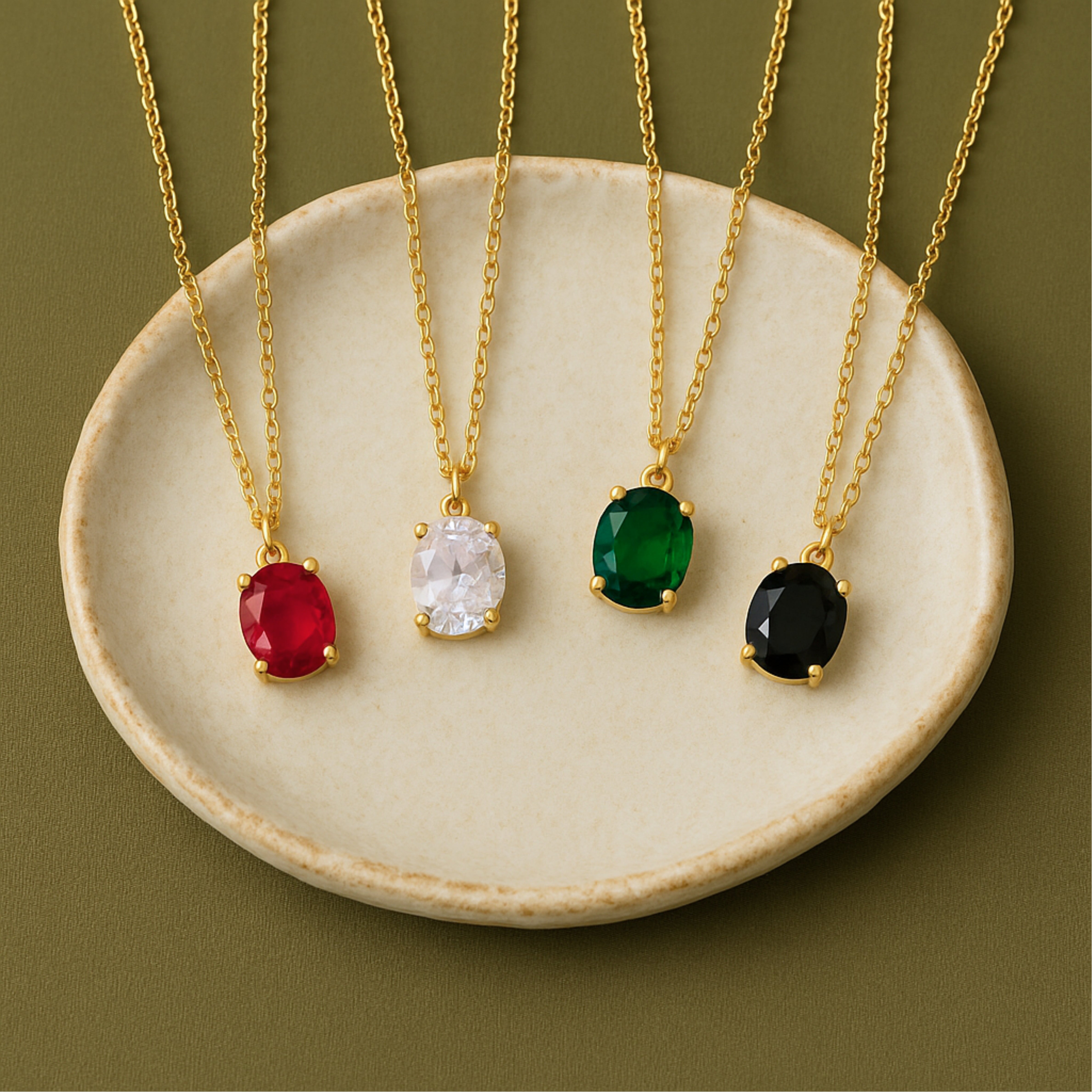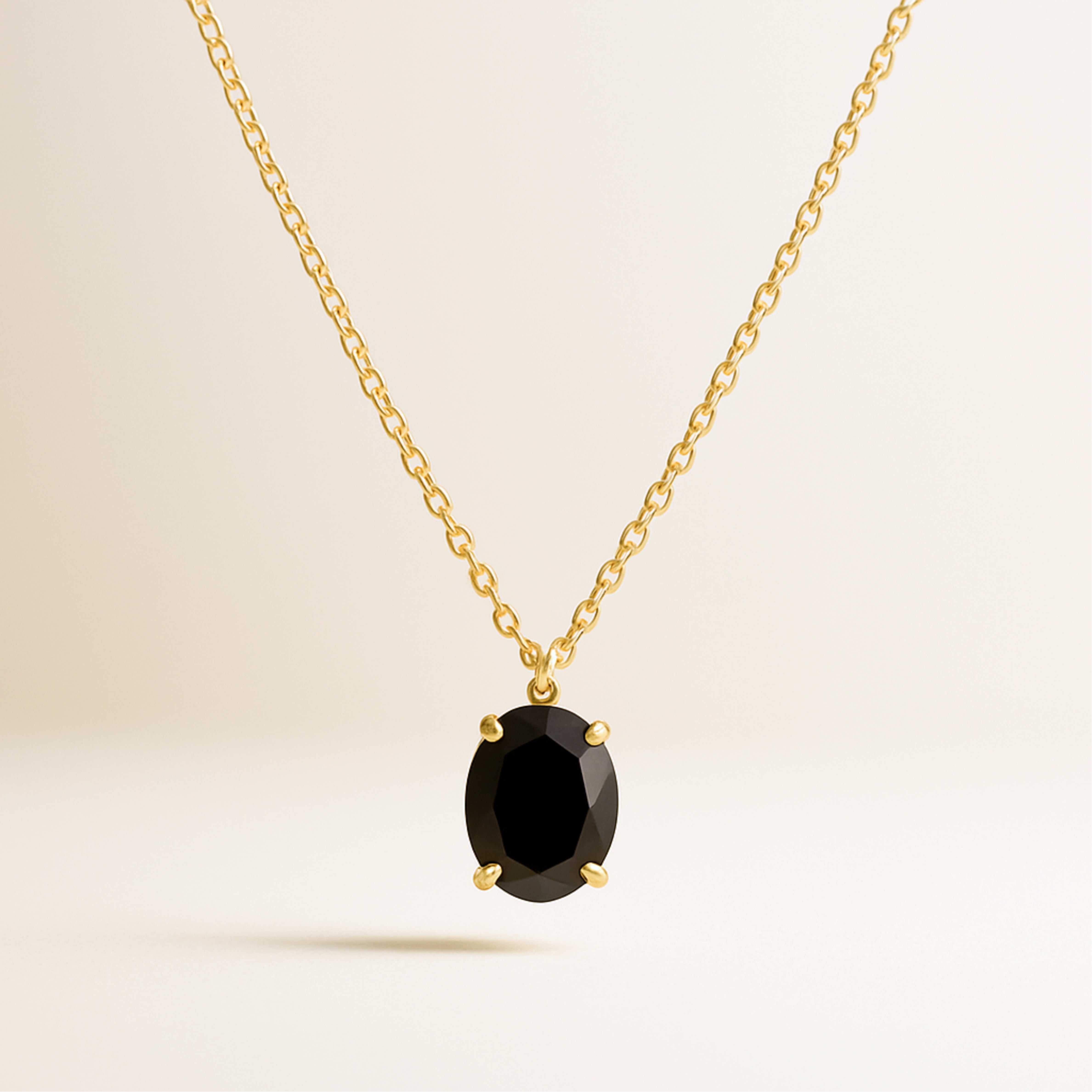 Explore our Oval Gemstone Solitaire Necklace. A hand-cut 10x8mm oval cubic-zirconia pendant—secured in a minimalist four-prong setting—hangs from a 18k gold-plated cable chain. Choose from six mood-lifting hues: blush rose, vibrant emerald green, dusk-violet tanzanite, fiery ruby red, midnight black onyx or classic diamond-clear crystal. The solid 925 sterling-silver core keeps it hypoallergenic and feather-light, while the 30cm chain (extendable up to 39 cm) lets you adjust for the perfect stack with chokers or longer chains.