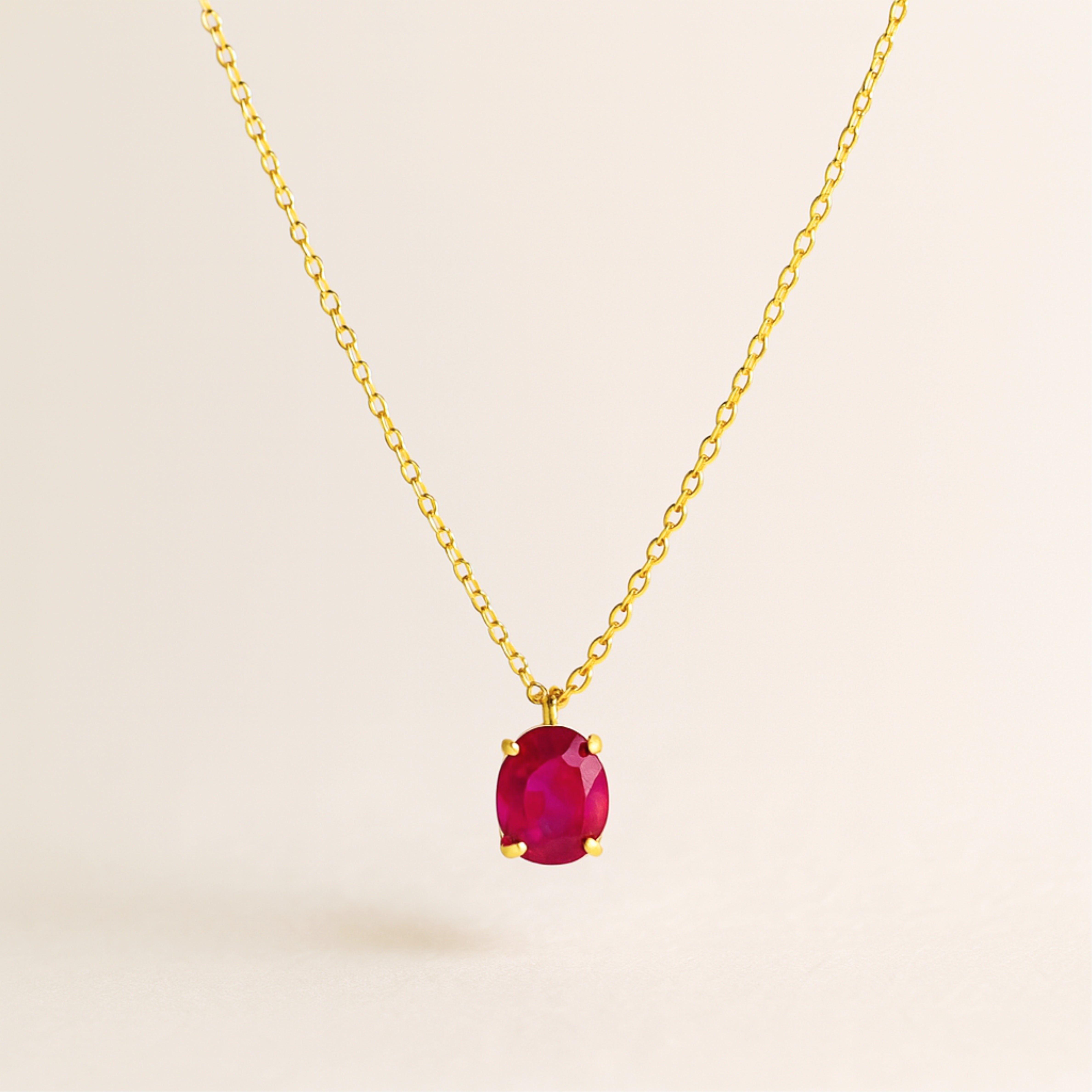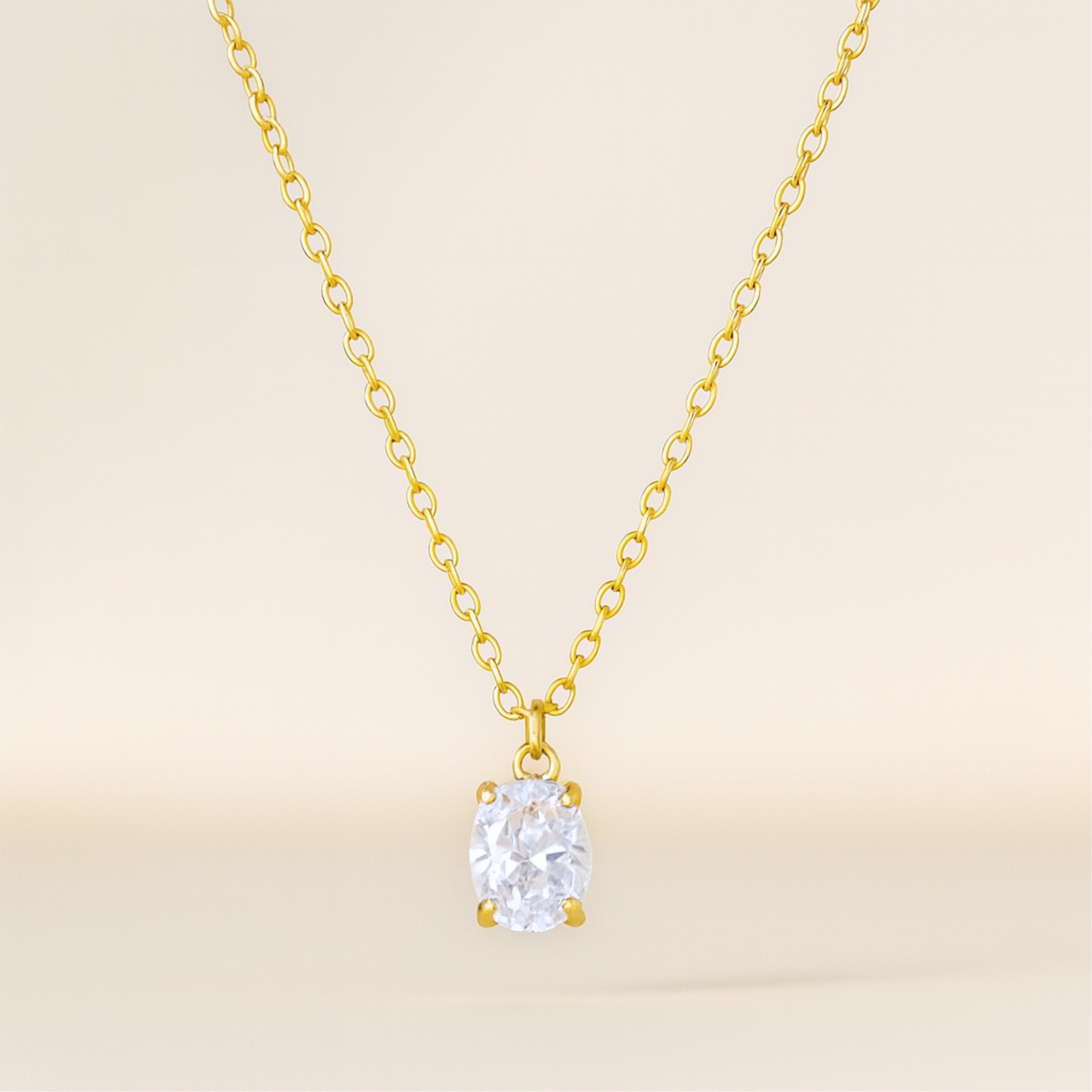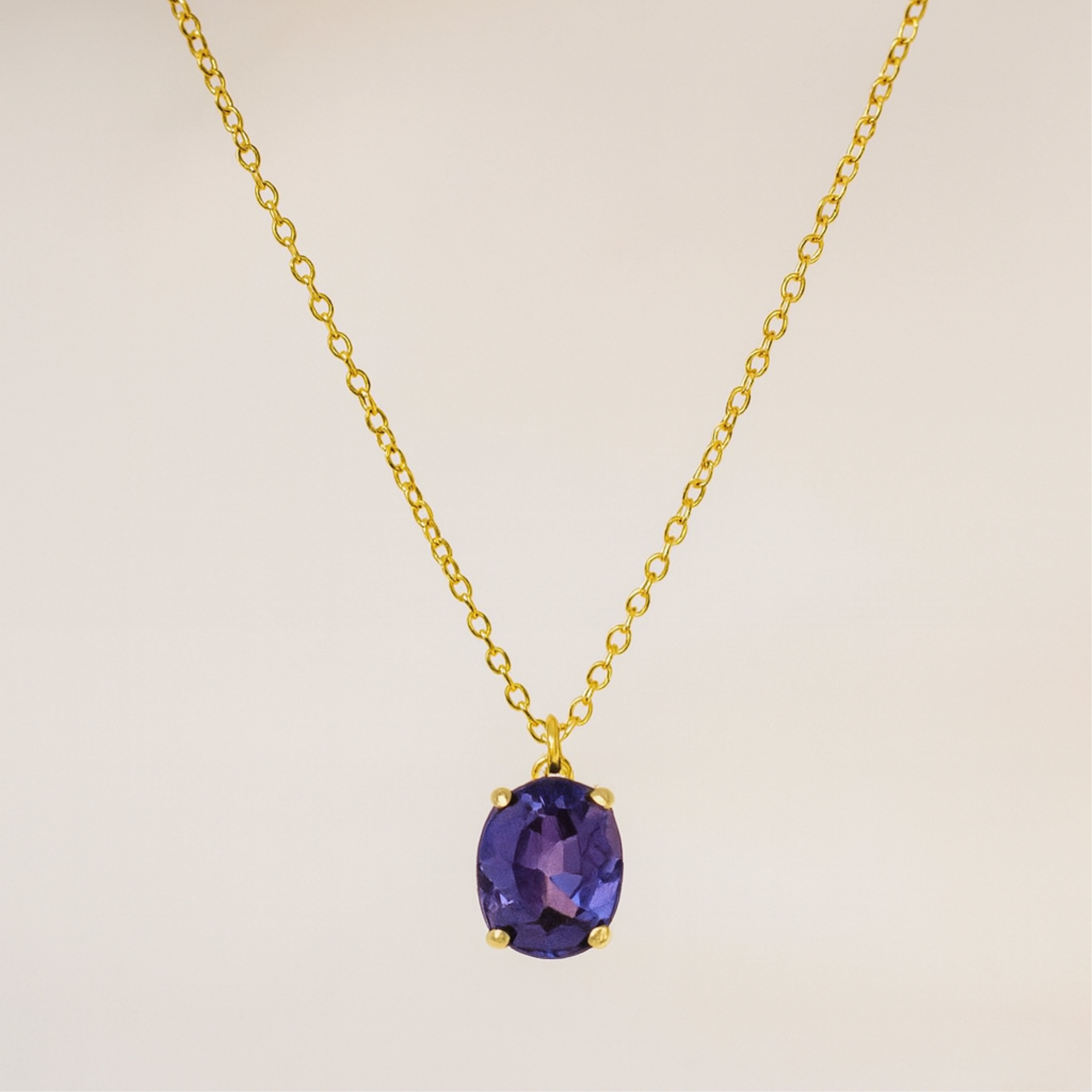 Explore our Oval Gemstone Solitaire Necklace. A hand-cut 10x8mm oval cubic-zirconia pendant—secured in a minimalist four-prong setting—hangs from a 18k gold-plated cable chain. Choose from six mood-lifting hues: blush rose, vibrant emerald green, dusk-violet tanzanite, fiery ruby red, midnight black onyx or classic diamond-clear crystal. The solid 925 sterling-silver core keeps it hypoallergenic and feather-light, while the 30cm chain (extendable up to 39 cm) lets you adjust for the perfect stack with chokers or longer chains.