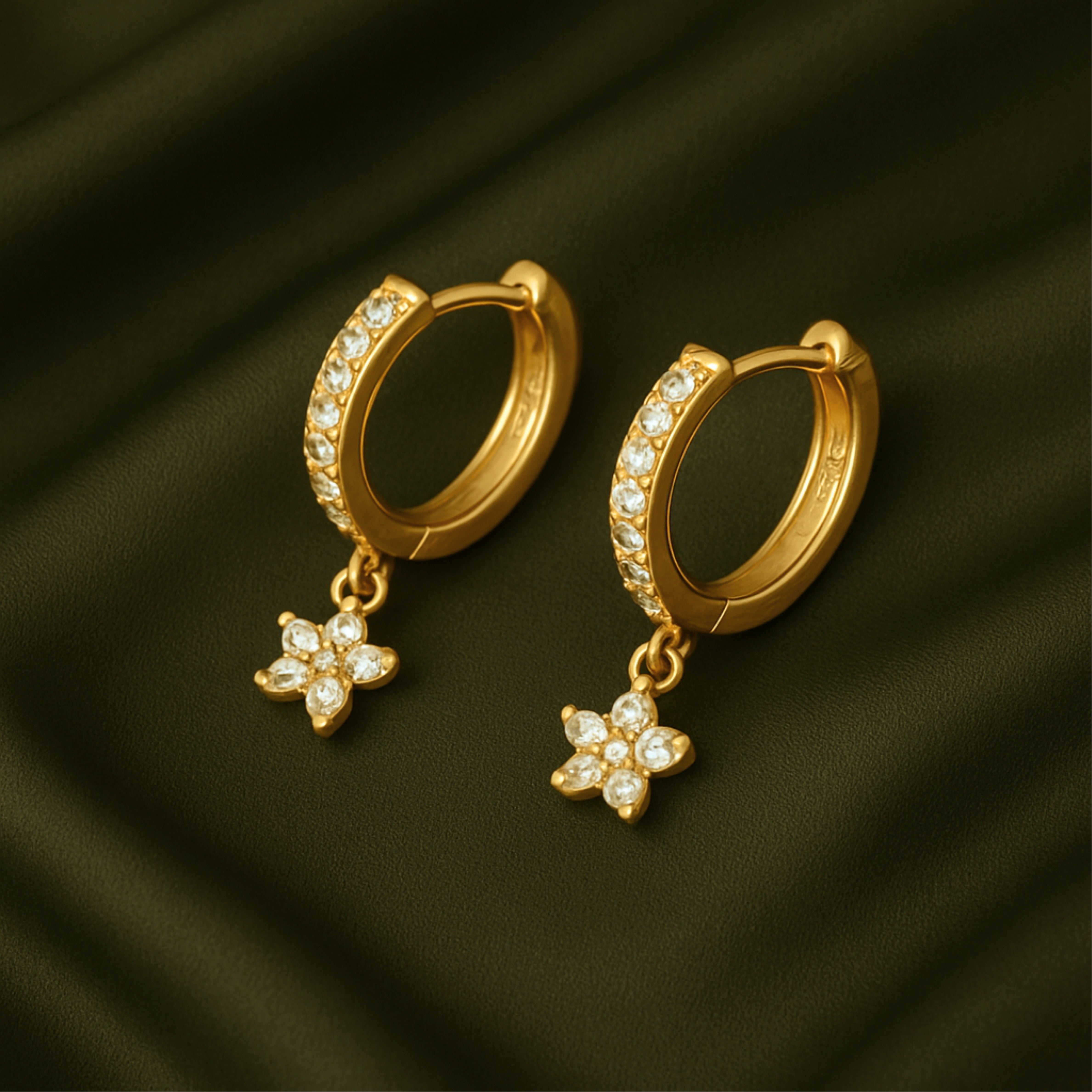 A soft bloom with a radiant shimmer—these 4-petal blossom drop earrings bring a touch of understated charm to any look. Crafted in 18k gold-plated sterling silver and adorned with marquise-cut zirconia stones, they're light, refined, and made to move with you.