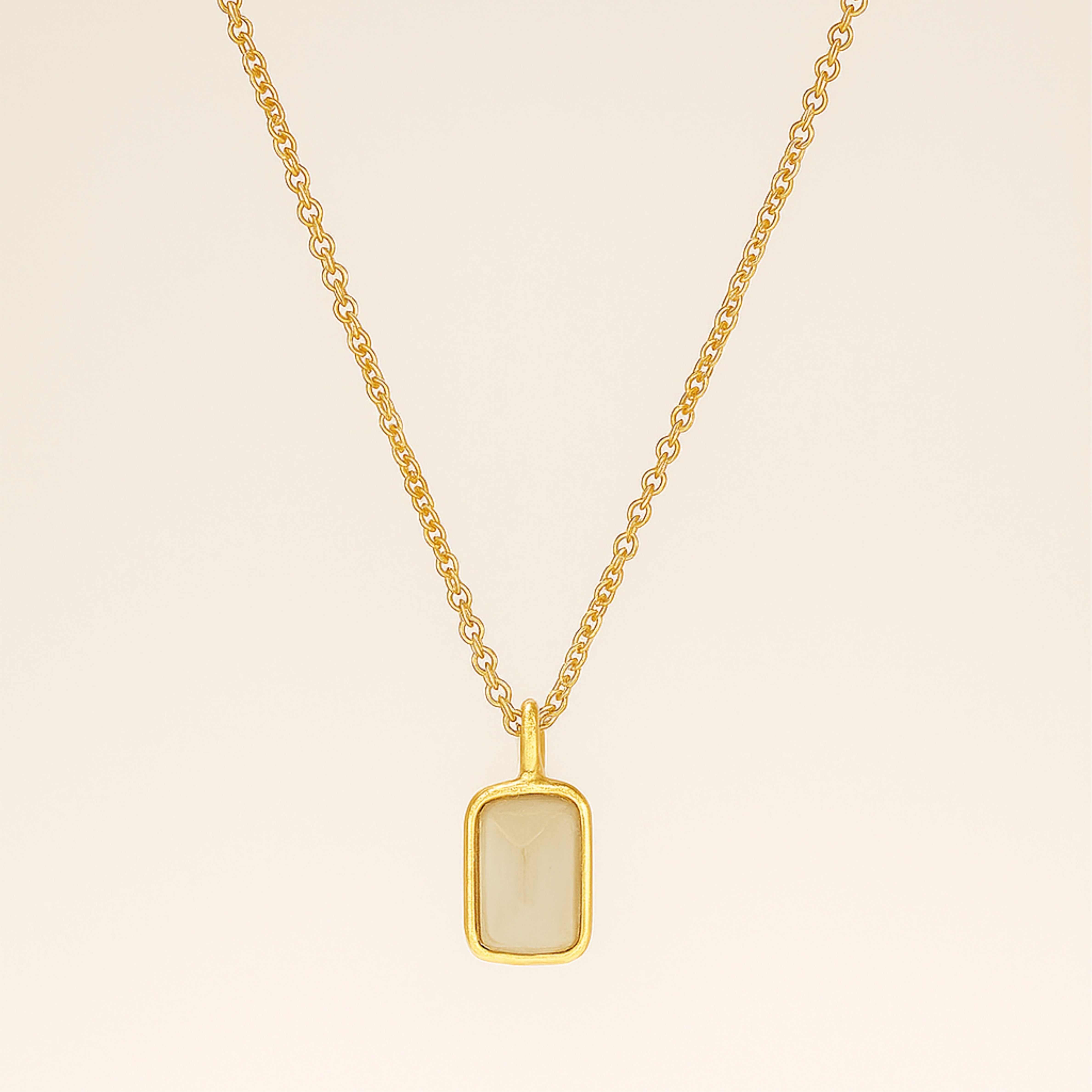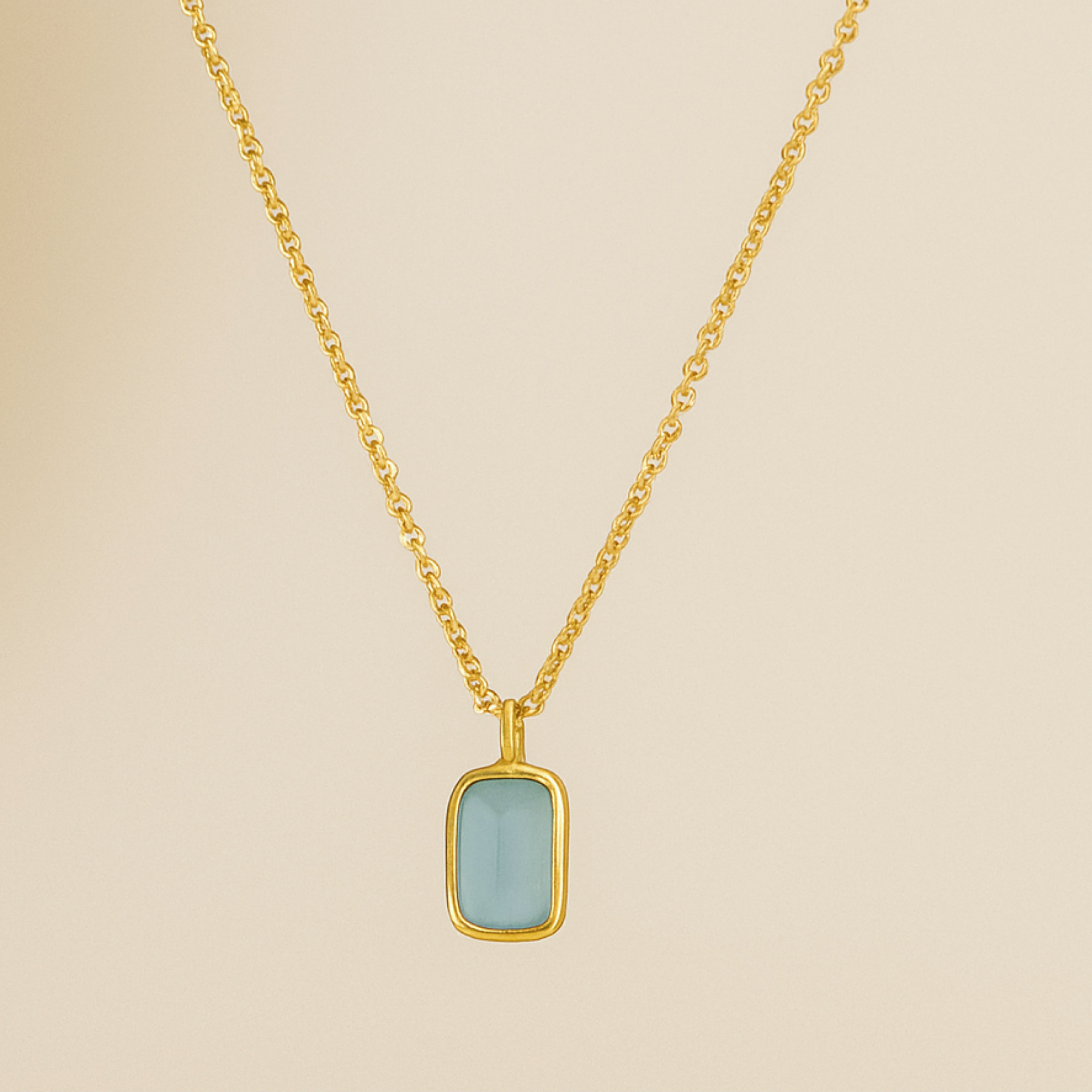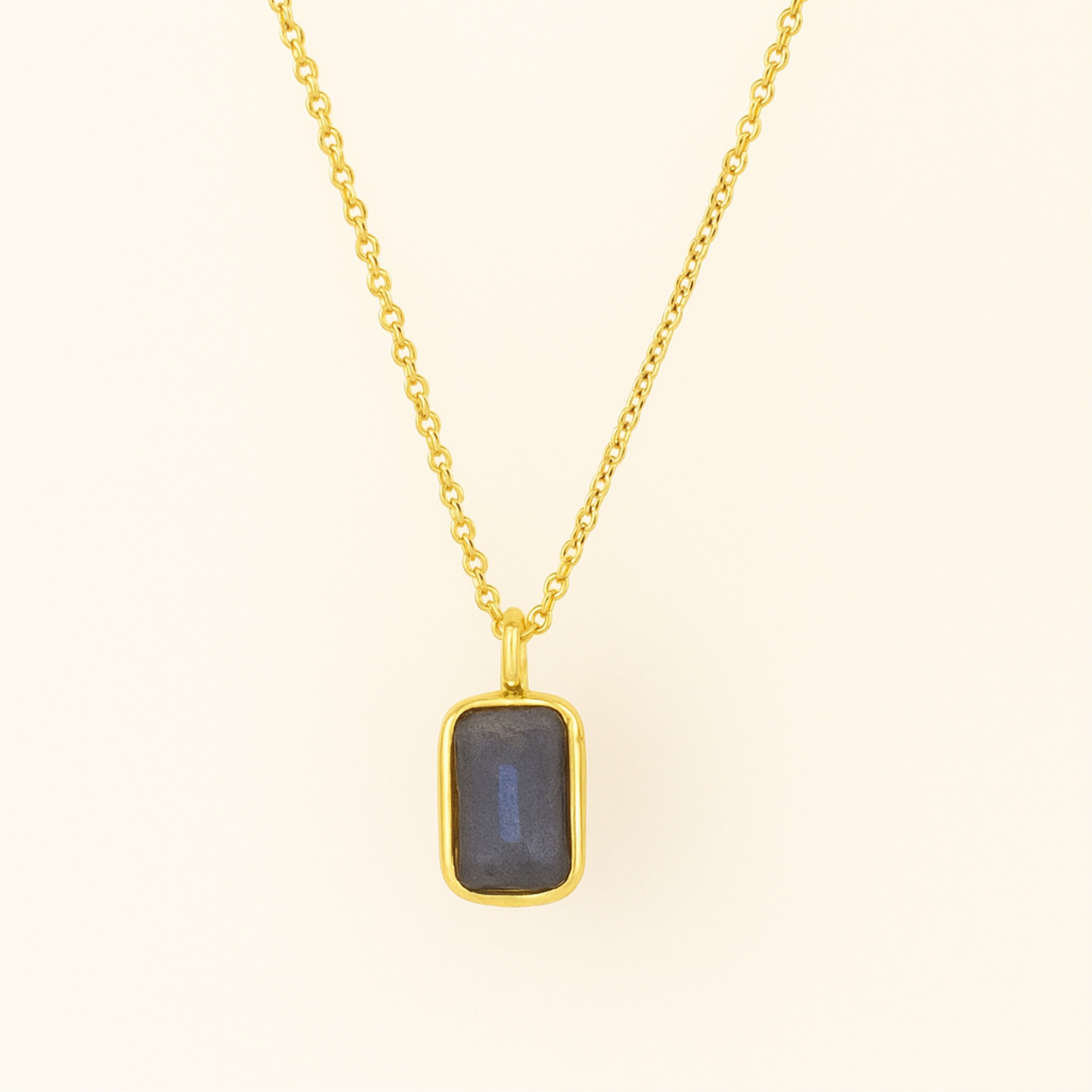 Clean lines, smooth color, effortless shine. Our rectangle gemstone necklace frames a polished gemstones—choose in a sleek 18 K gold chain and suspends it from a dainty cable chain. Lightweight yet eye-catching, it’s the easy pop of color your everyday stack has been waiting for.