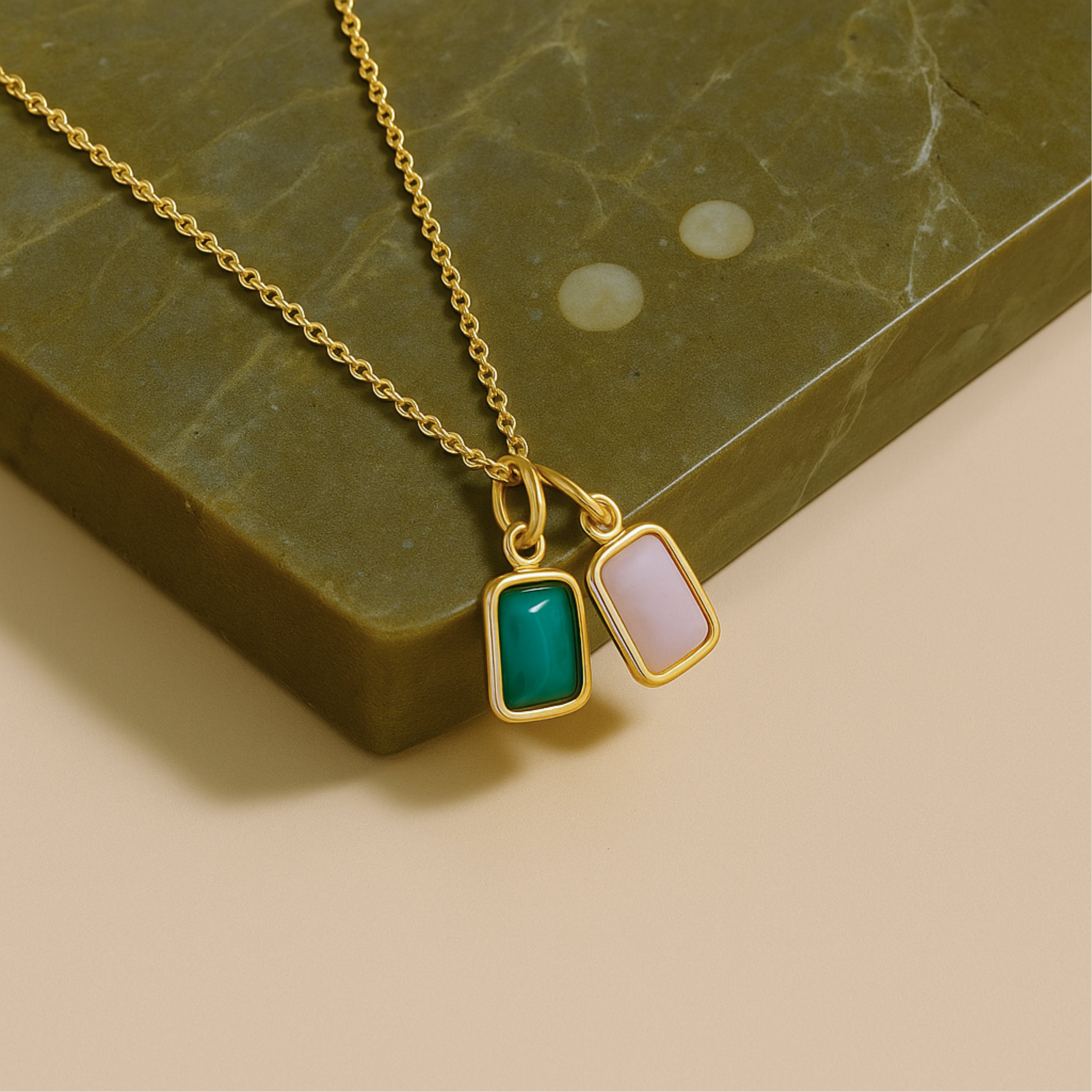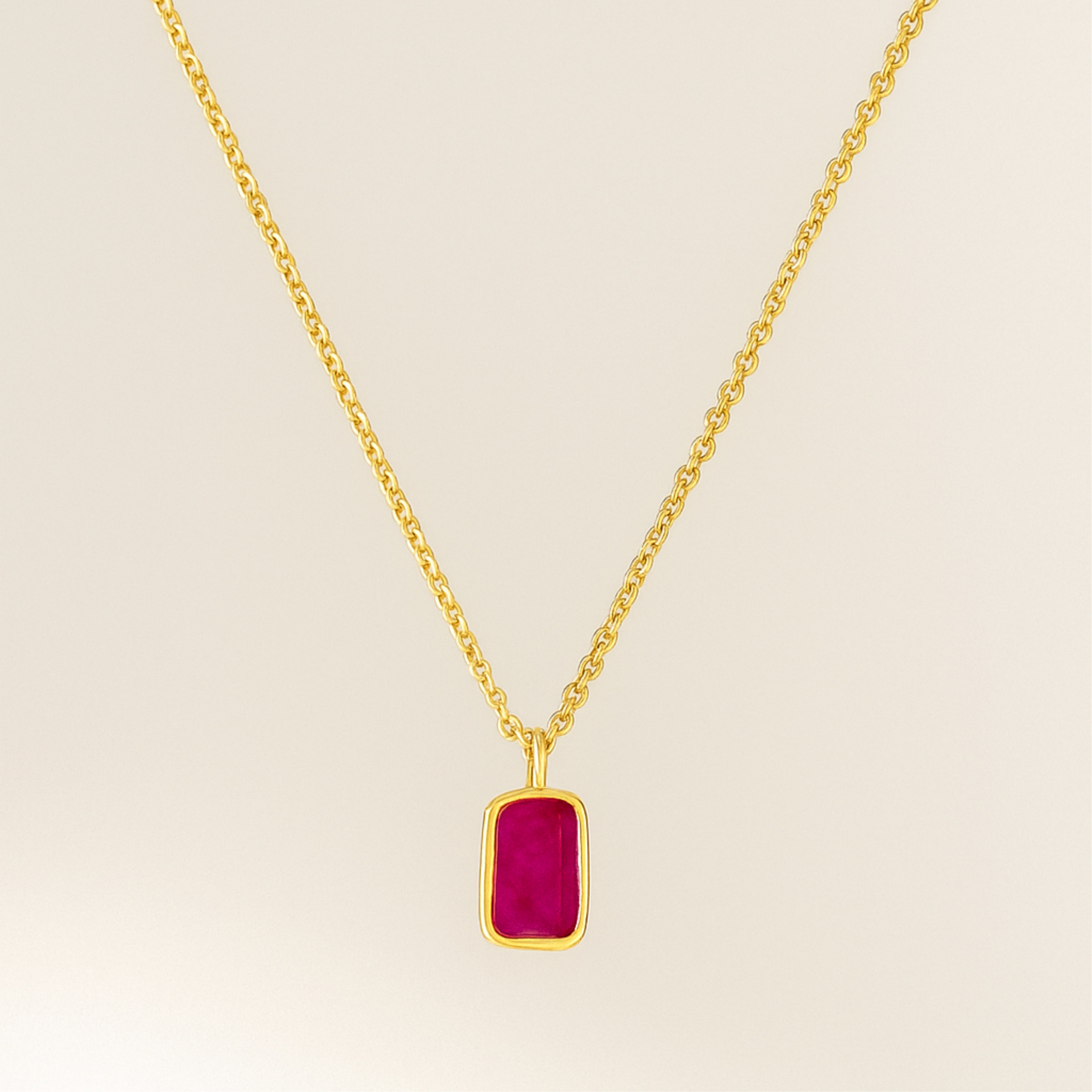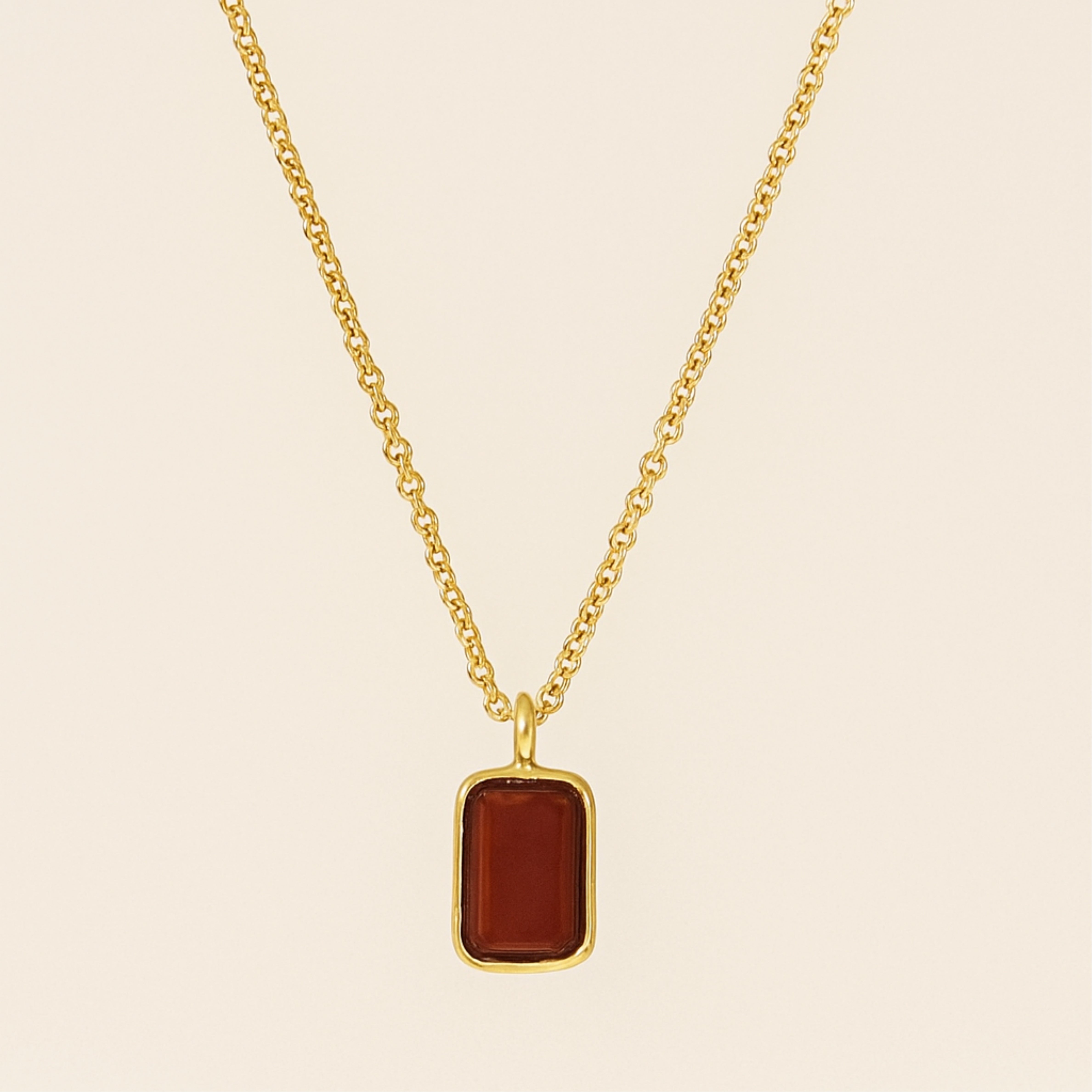 Clean lines, smooth color, effortless shine. Our rectangle gemstone necklace frames a polished gemstones—choose in a sleek 18 K gold chain and suspends it from a dainty cable chain. Lightweight yet eye-catching, it’s the easy pop of color your everyday stack has been waiting for.