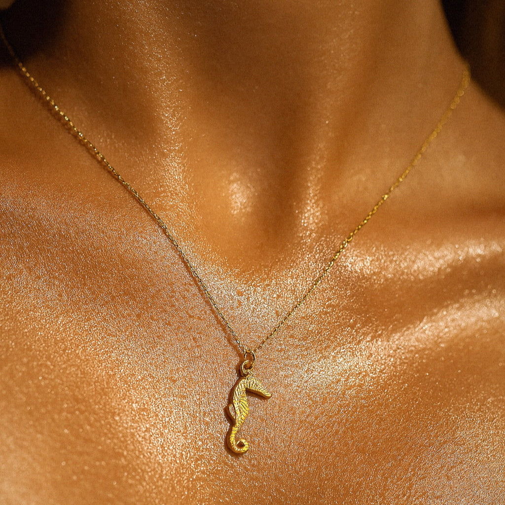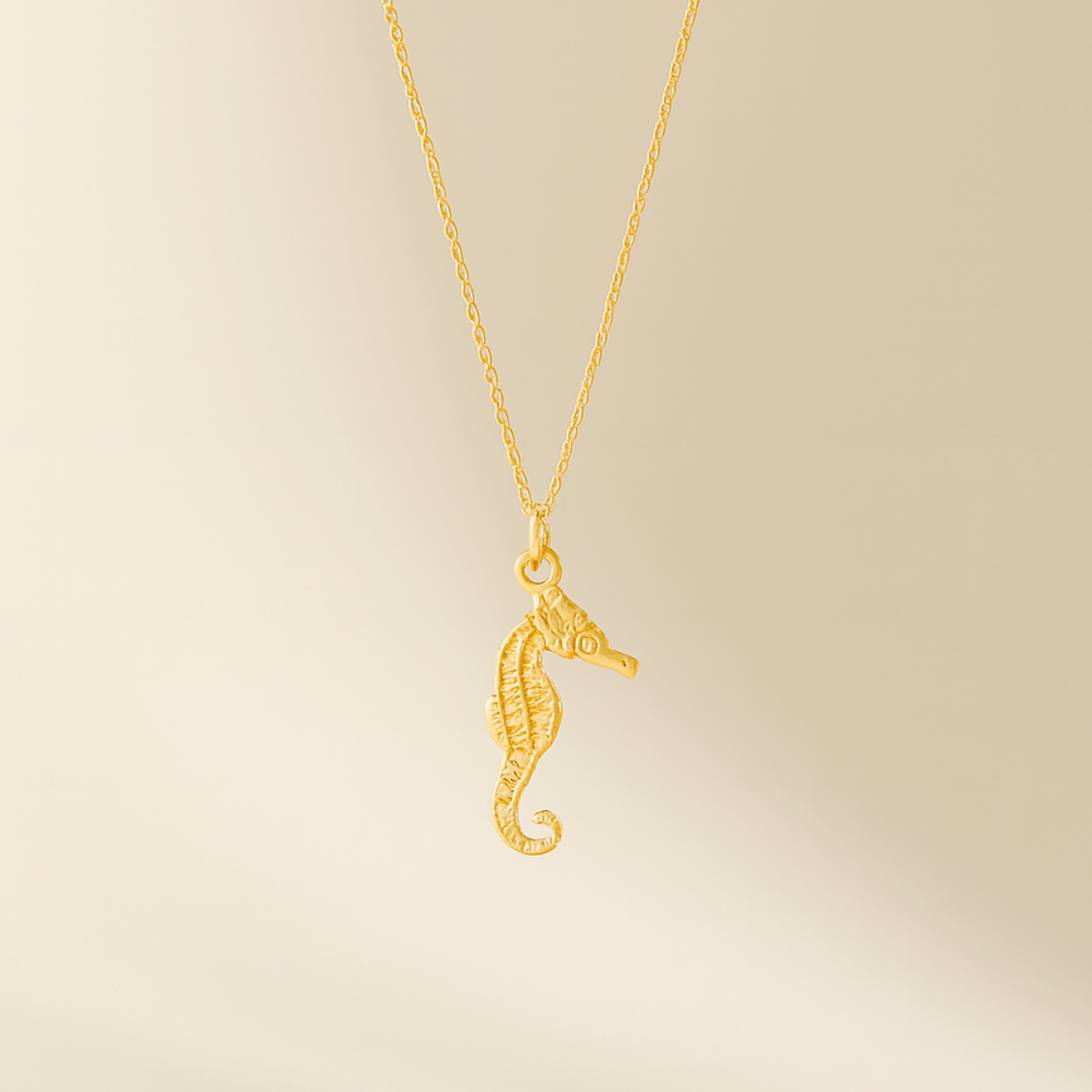 A symbol of serenity and strength, our Seahorse Necklace brings ocean charm to your everyday look. Handcrafted in radiant 18k gold plating, this delicate pendant captures the intricate beauty of marine life with subtle elegance. Whether layered or worn solo, it adds a whimsical touch of seaside magic to your jewelry story.